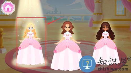 3、选择红框箭头指向的金发公主角色开始互动游戏。