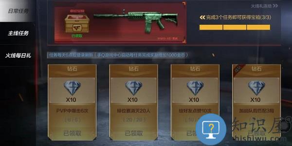 1、每日任务45,每日爆头10,每日特殊任务7=每天保底62钻石