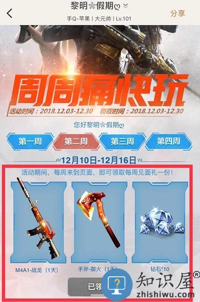 4、掌上穿越火线每周领取10钻石(活动界面,基本每周都有的)