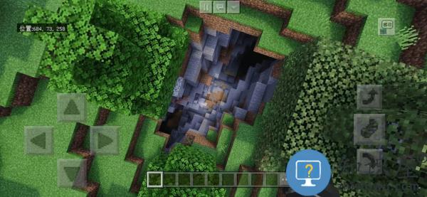 这个地图出生点附近有一个垂直的矿洞,很适合玩生存的时候去开矿,里面岔路很多,一定要记得路(图片左上角有坐标)