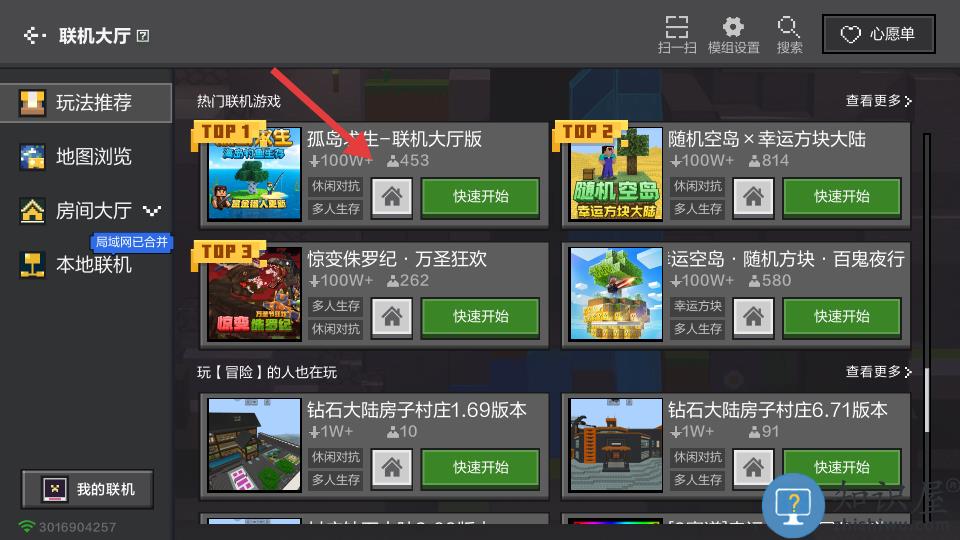2、在游戏模式中点击联机玩法。