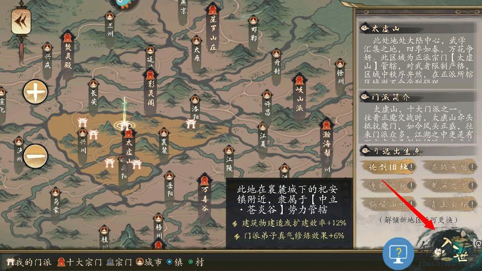 镜头中出现了一块大陆,你在上面看到了十块区域,每个区域上都点缀着一个闪亮的标志,上面写着不同的名字,像太虚山、影灵阁等等。然后从这个标志上辐射出千百条光线,将所有小点串联在一起,形成一张密密麻麻的大网。