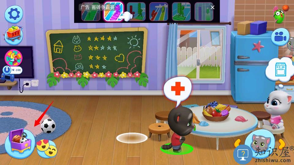 4、让汤姆可以吃到足够多的食物,玩自己想要玩的所有玩具。