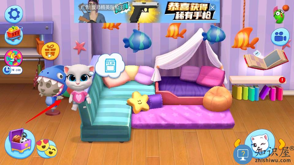 1.点击每位家族成员头顶上的图标,便可帮助其完成愿望,当房间内存有成员们想要完成的事情时,点击图标便可只身前往,再点击对应的位置即可,比如图中狗狗本头顶出现了“淋浴”的标志,说明它现在想要洗澡,点击它的头顶,便会来到浴室旁,在点击浴室即可。