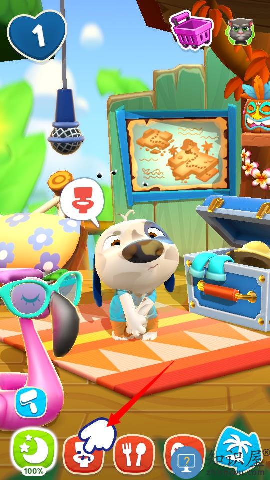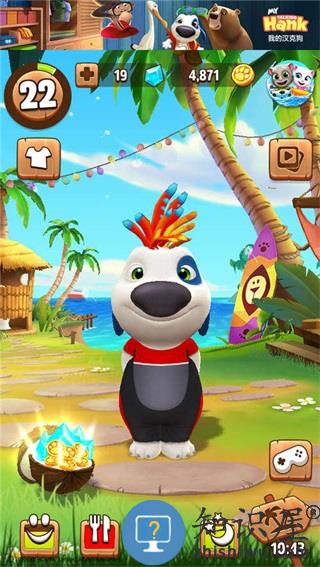 3、通过麦克风与汉克趣味对话,收集钻石兑换服装玩具,体验搞笑的互动反应。