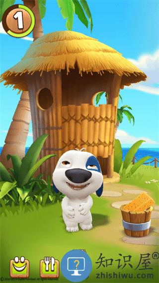 通过了教程便来到了主界面。主界面稍微有些杂乱,但还是很容易辨认的。左上角为你拥有的货币,屏幕中央便是我们的主角——汉克狗,下方分别是经验值条以及功能按钮,从左到右依次是:玩耍、饮食、洗浴、睡觉、探险、小游戏,上方分别是钻石和金币左上角便是汉克狗的等级了。