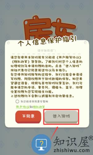 1、点击进入游戏按钮,同意隐私政策开始游戏。