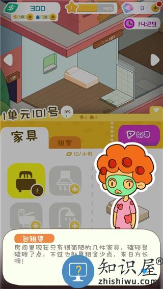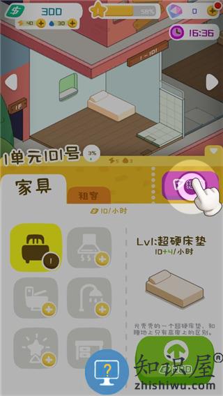 6、作为房东,您随时都可以对房内的家具进行升级置换,而且社区繁荣度越高,家具可升级的等级也会越来越高, 升级了家具,租客们会自觉提高租金的。没有人能从包租婆手下占到便宜,这里点击您想要进行操作的房间,就可以查看和升级家具