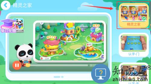 3、根据红框提示点击精灵之家场景,进入认字学习环节。
