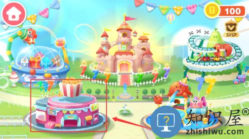 2、选择红框标注的粉色爆米花建筑,开始游乐园经营。