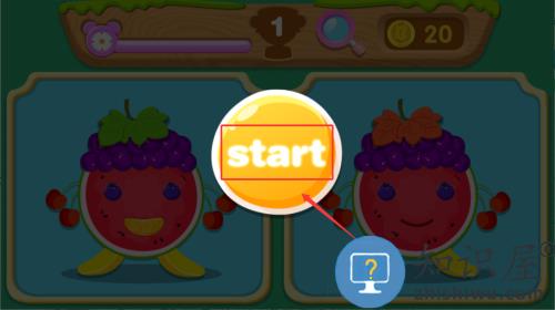 2、点击红框标注的橙色开始按钮,启动水果配对游戏。