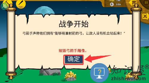 3、这关卡的任务是摧毁弓箭手的雕像就赢了。