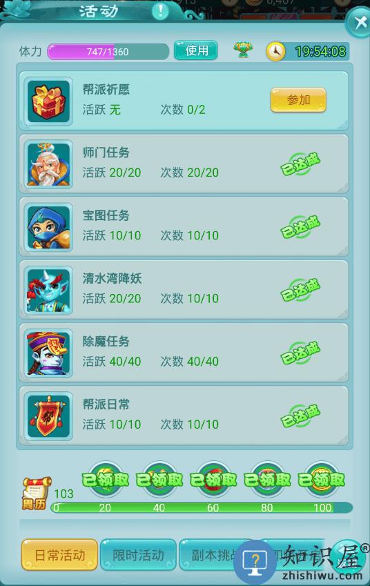 还有一些限时任务,比如“强盗首领”、“强盗斥候”、“门派入侵”“幻境寻宝”等,早间或晚间活动也要参加哦