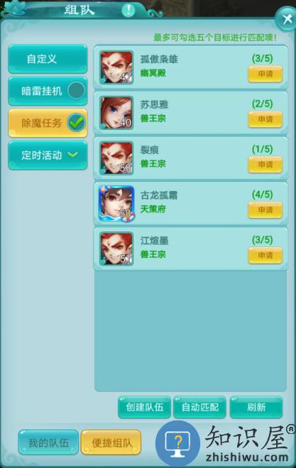 而且组队也超简单的,不管是自己当队长还是想混队伍,世界喊一喊或者点击组队界面快速匹配队伍,人就来了呢,你说封妖除魔次数太多完成太慢?