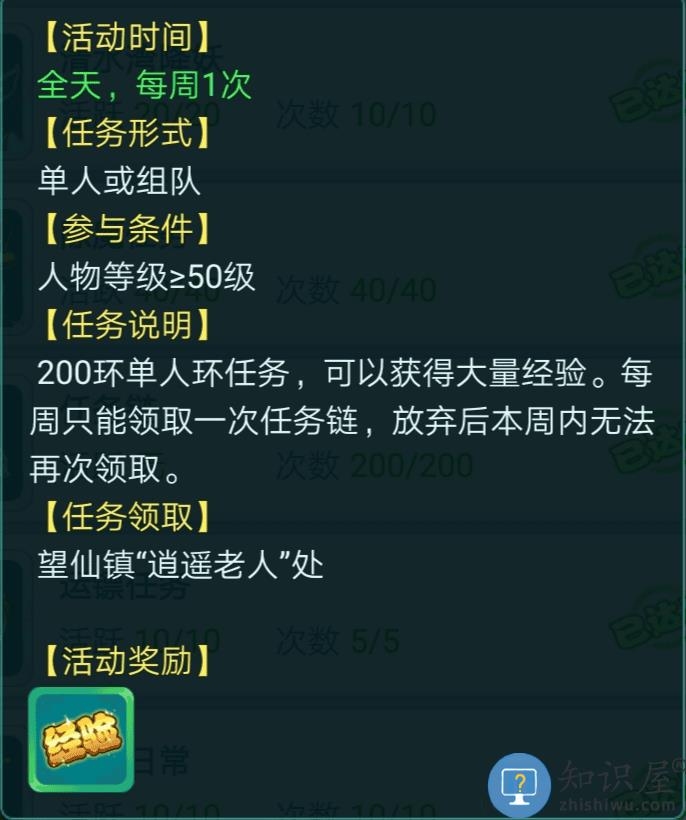 少侠达到50级后将开启任务链,这个任务链有200环,一环比一环经验多,这可是回合制老玩家都知道,并且不会放过的必做任务之一,而且很多少侠的等级都是靠跑环来拉开距离的