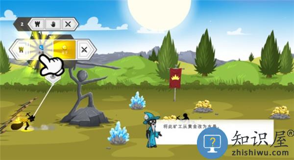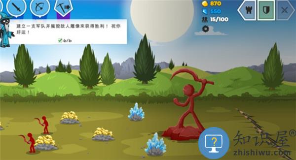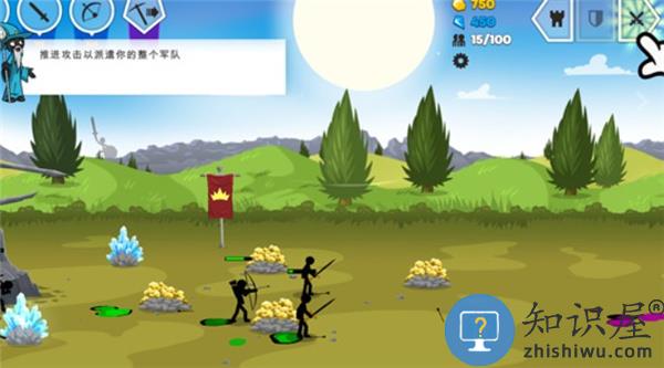 还能组成火柴人阵容,这时候,可以点击右上角的全体进攻图标,所有火柴人会朝着敌人进攻。