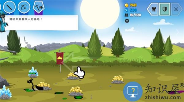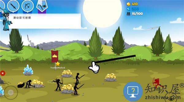 来到左上角,有一个弓箭手作战图标,点击一下,召唤出弓箭手,只要朝着敌人滑动,可以自动射箭。