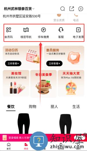 4、商城页面提供会员码、楼层指引、停车缴费、客服咨询及电子发票服务。