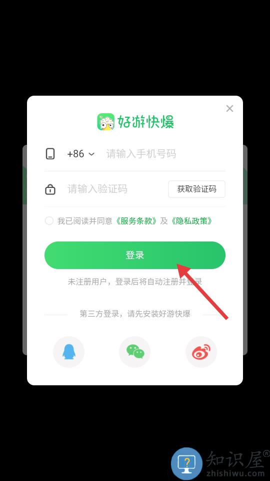 3、填写手机号验证码登录。
