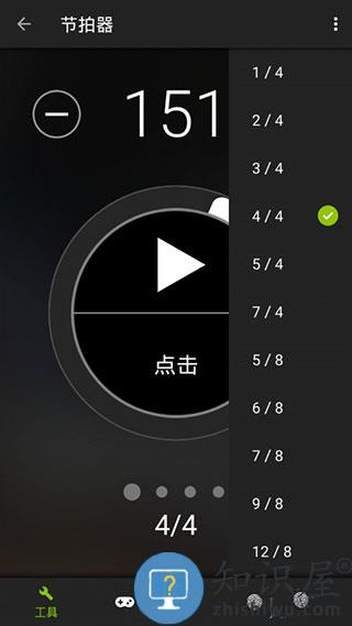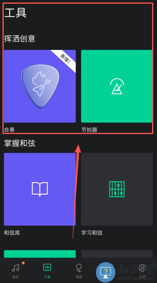 4、工具页里有节拍器、和弦库这些实用功能,比如开节拍器设定速度练节奏,或者到和弦库查指法。