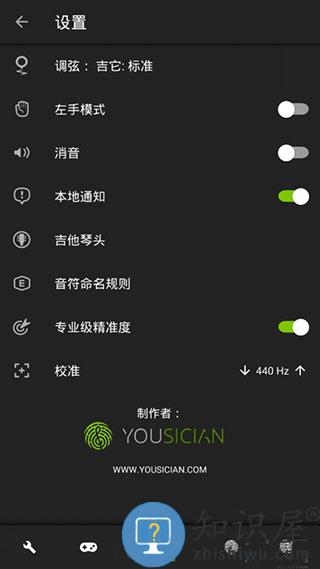 3、点右上角的小齿轮可以进入设置界面,这里可以设置乐器类型、持琴模式、琴头、音符命名等等