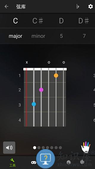 8、点击弦库,这里列出和弦在吉他把位上的所有指型,可以点击喇叭按钮播放试听