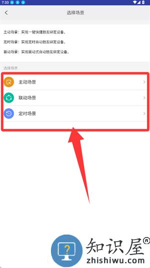 2、从主动、联动或定时等类型中挑选所需场景。