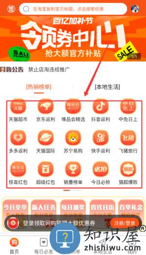 商品板块:不同专区,优惠券领不停,让你购物一步到位!