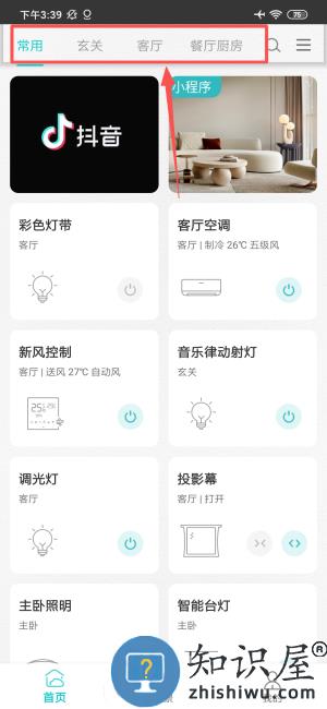 3、通过常用玄关等分类,控制智能设备。