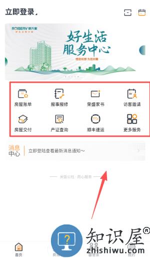 3、在首页,可选择房屋验单或报事报修等功能使用对应服务。