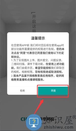 1、在春华网校APP中点击"同意"温馨提示,进入功能页面。