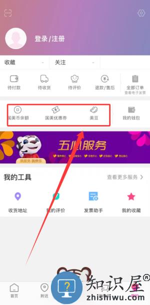 3、我的页面集中显示个人账户内国美币余额、可用优惠券及美豆积分数量。