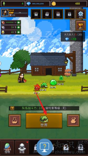 2、在主界面点击红框标注的世界按钮,开始探索。