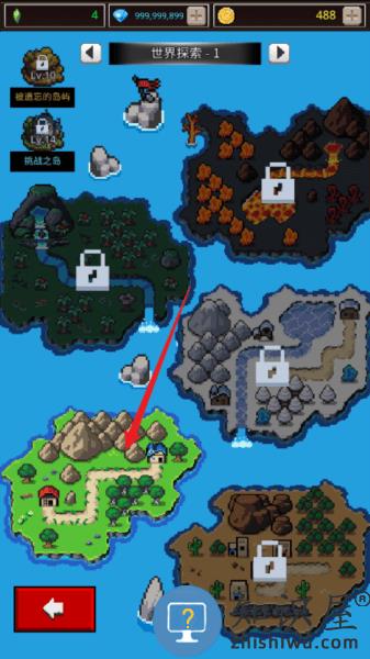 3、选择红框标注的被遗忘的岛屿,开始挑战关卡。