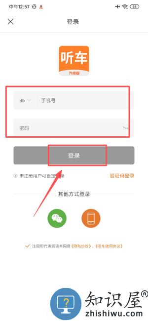 2、在登录页填写手机号及密码,点击登录进入主界面。