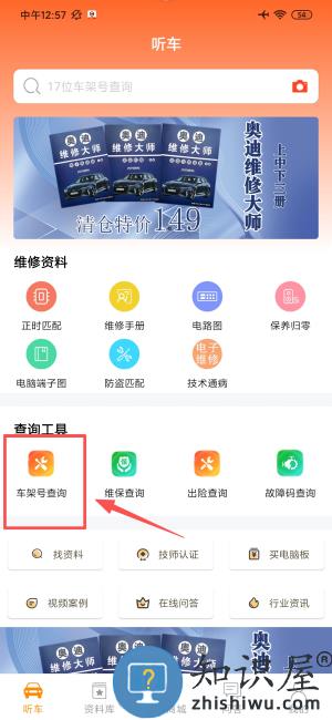 3、在主界面查询工具板块选择车架号查询,进入页面。