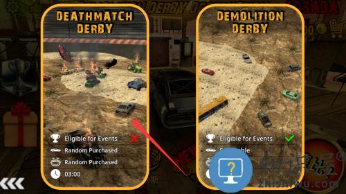 2、点击红框箭头,从死亡竞赛切换到破坏德比赛模式。