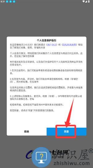 1、启动应用阅读保护指引,点击同意按钮进入。