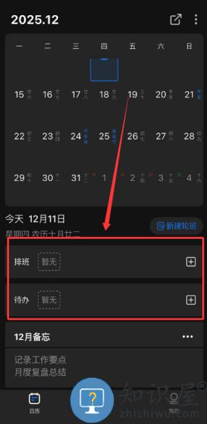 3、该页面同时以日历视图直观展示已安排的班次列表及待处理的个人工作事项提醒。
