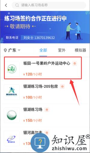 2、在该界面选择目标如坂田一号果岭,进入详情页面。