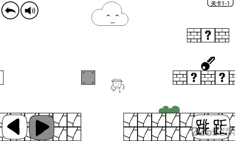 总体来说1-1关难度并不大,首先开头会碰到一个问号,这里可不能顶,不然就过不去了。然后在跳跃处可以看到一个隐藏的箱子,顶出后调到箱子上,