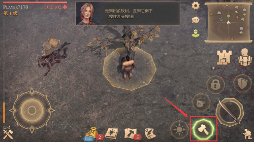 1、按住斧头按钮,砍伐前方树木。