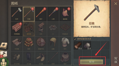 2、在图纸界面找到并制作石镐。
