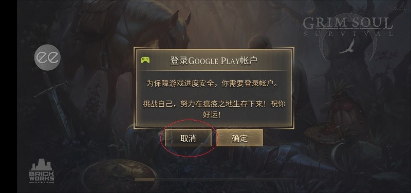 2、实名认证之后,进入游戏提示"登录google play账户",点取消即可;