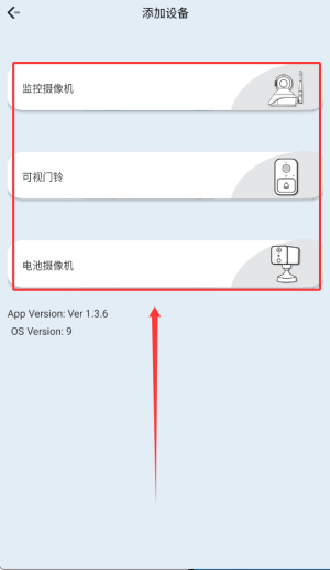 2、主页面支持添加各类监控设备,如摄像机、可视门铃及电池款摄像机。
