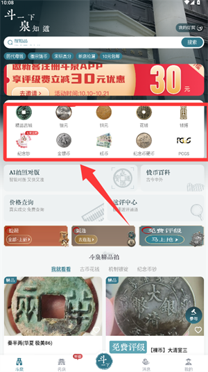 斗泉钱币app是专业的钱币交易软件,拥有文玩古董、古钱币,专业的鉴定方式,钱币范围包括古钱币、银元铜元机制币、花钱、银锭以及海外钱币等等,用户能随时根据自己的需求选购,在线交易,简单方便,平台还为大家准备了很多相关钱币的知识