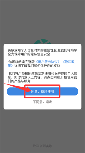 1、启动应用后,在隐私提示中点击同意继续使用。