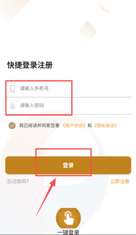3、在登录页输入手机号密码,勾选协议点击登录完成操作。