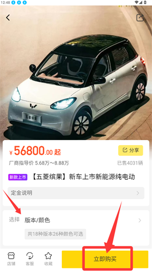 3、在详情页选定版本与颜色,点击购买推进流程。