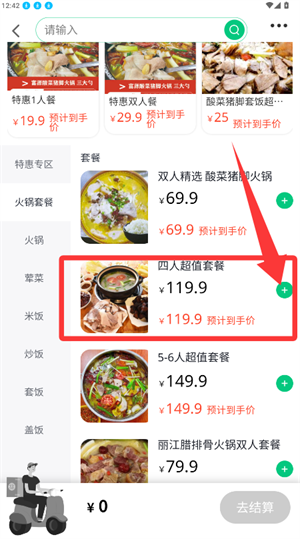3、点选套餐旁的加号按钮,即可加入购物车结算。